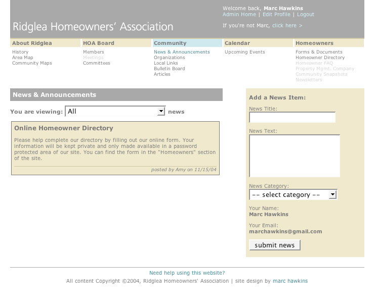 A smattering of personal projects from the last 20 years. Some local websites, a home owners' association website, sites for friends, and some previous versions of this site. Enjoy the shoebox of screen caps.